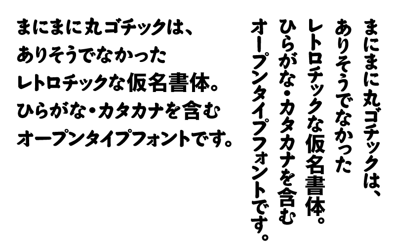 ありそうでなかったレトロチックな仮名書体、「まにまに丸ゴチック」の公式サイトです。