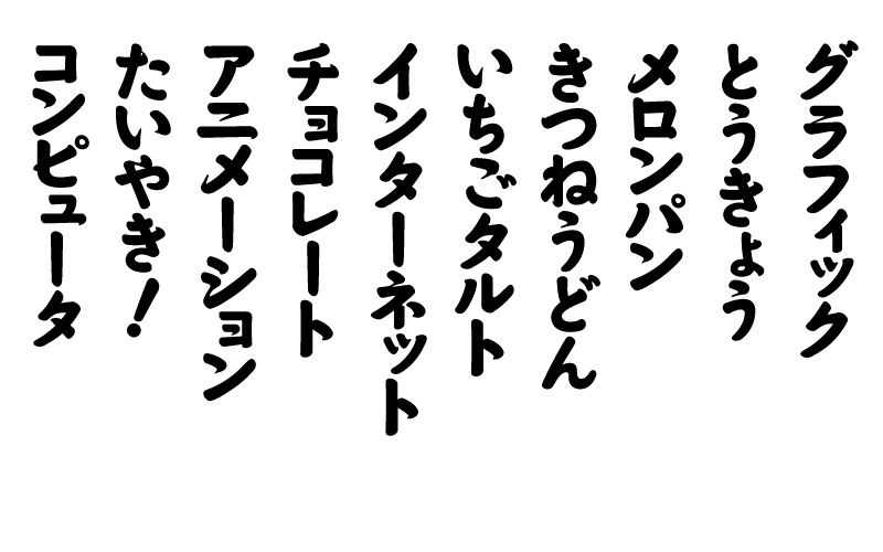 「まにまに丸ゴチック」は、筆文字と丸ゴシック体を合わせたようなデザインの仮名書体。